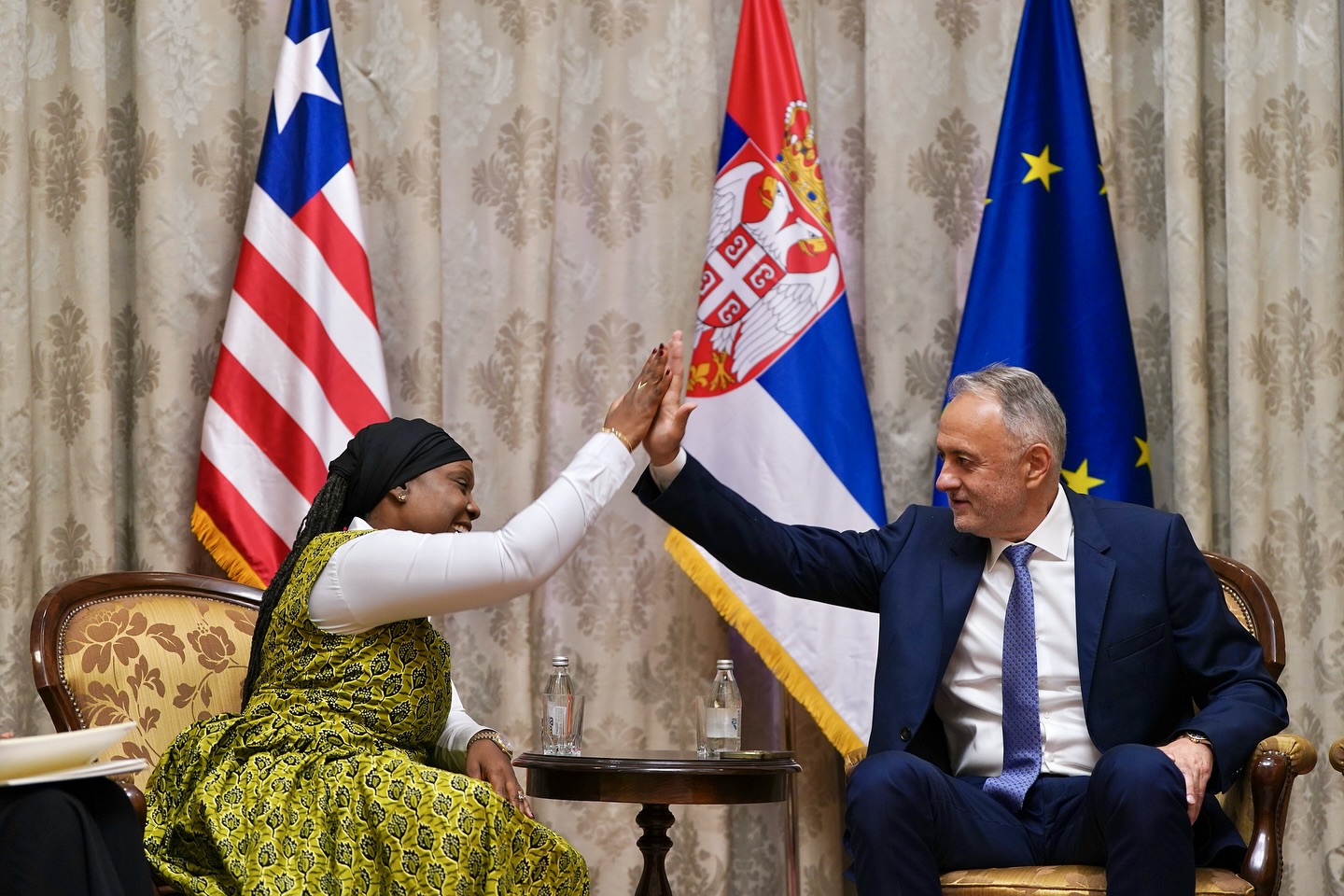 Састанку су присуствовали и шефица кабинета Министарства спољних послова Републике Либерије Сарах Каба Џонс, државни секретар Огњен Цвјетичанин И Урош Прибићевић помоћник министра за међународну сарадњу Министарства спорта Републике Србије.