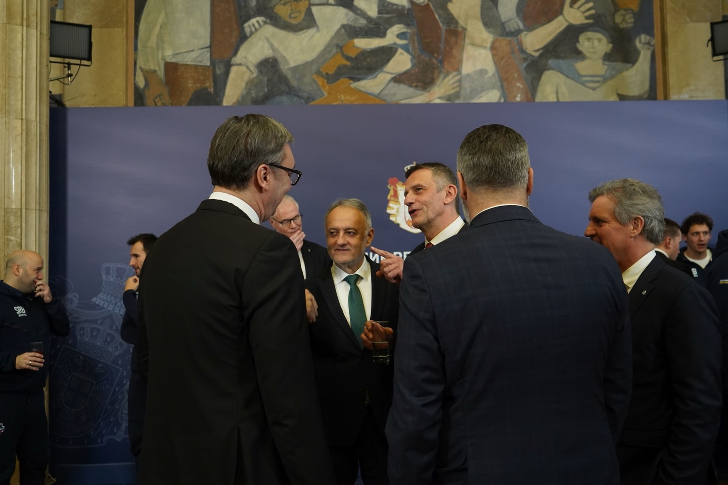 Пријему су присуствовали и министар спорта Зоран Гајић, као и државни секретар Марко Кешељ, који су заједно са председником честитали репрезентацији на освајању злата и великом успеху за српски спорт.